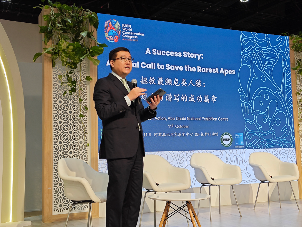 2025 年 10 月 11 日,海南国家公园研究院,作为全球长臂猿联盟(Global Gibbon Network,简称 GGN)秘书处,联合天合公益基金会及联盟核心外方合作伙伴,在世界自然保护大会期间成功举办了主题为 “一个成功的故事 —— 呼吁拯救最稀有猿类的全球行动”(A Success Story: A Global Call to Save the Rarest Apes)边会。