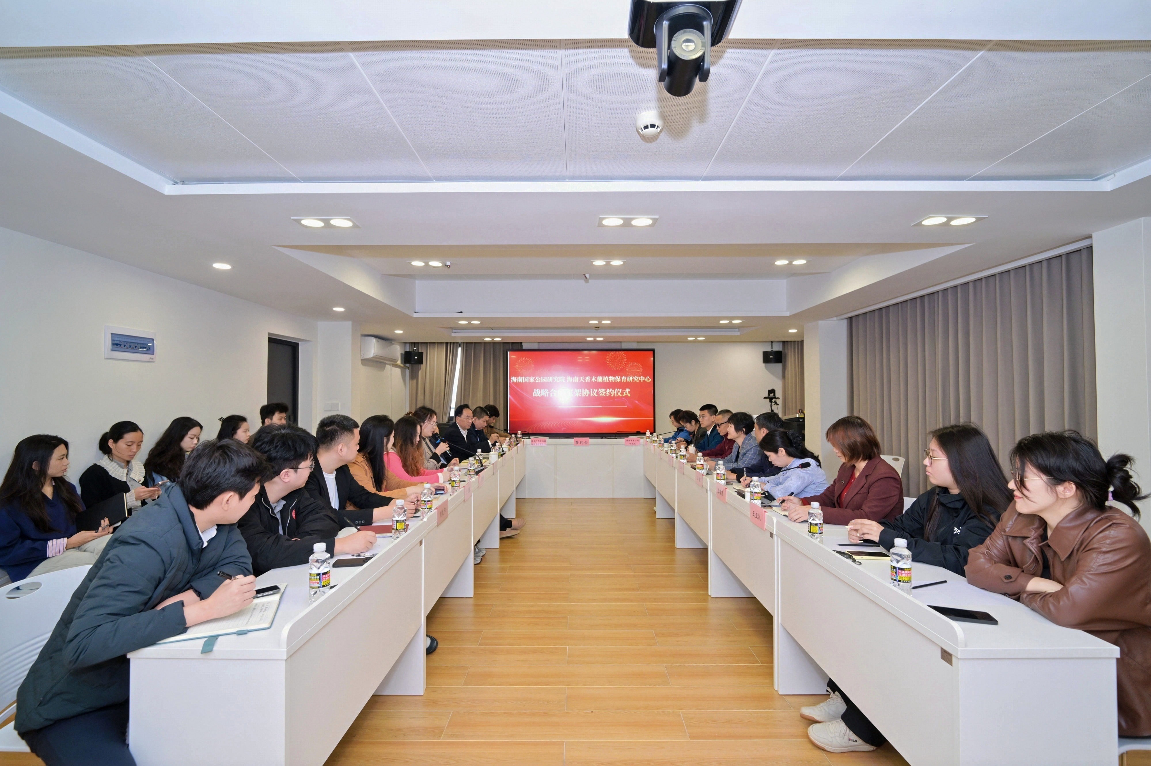 座谈结束后,在全体与会人员的见证下,海南国家公园研究院与海南天香木兰植物保育研究中心正式签署战略合作协议。研究院同时向捐赠方颁发了荣誉证书,双方握手合影,活动在热烈友好的氛围中圆满落幕。